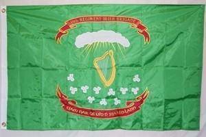 This is the flag of the 69th Irish Regiment from New York. Under the harp are a row of flowers and a banner that translates to, Who have never retreated from clash of spears.