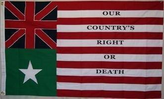 This is one of the flags of Texas independence made after the Alamo, Lt. Baker made this flag to commemorate his army.
