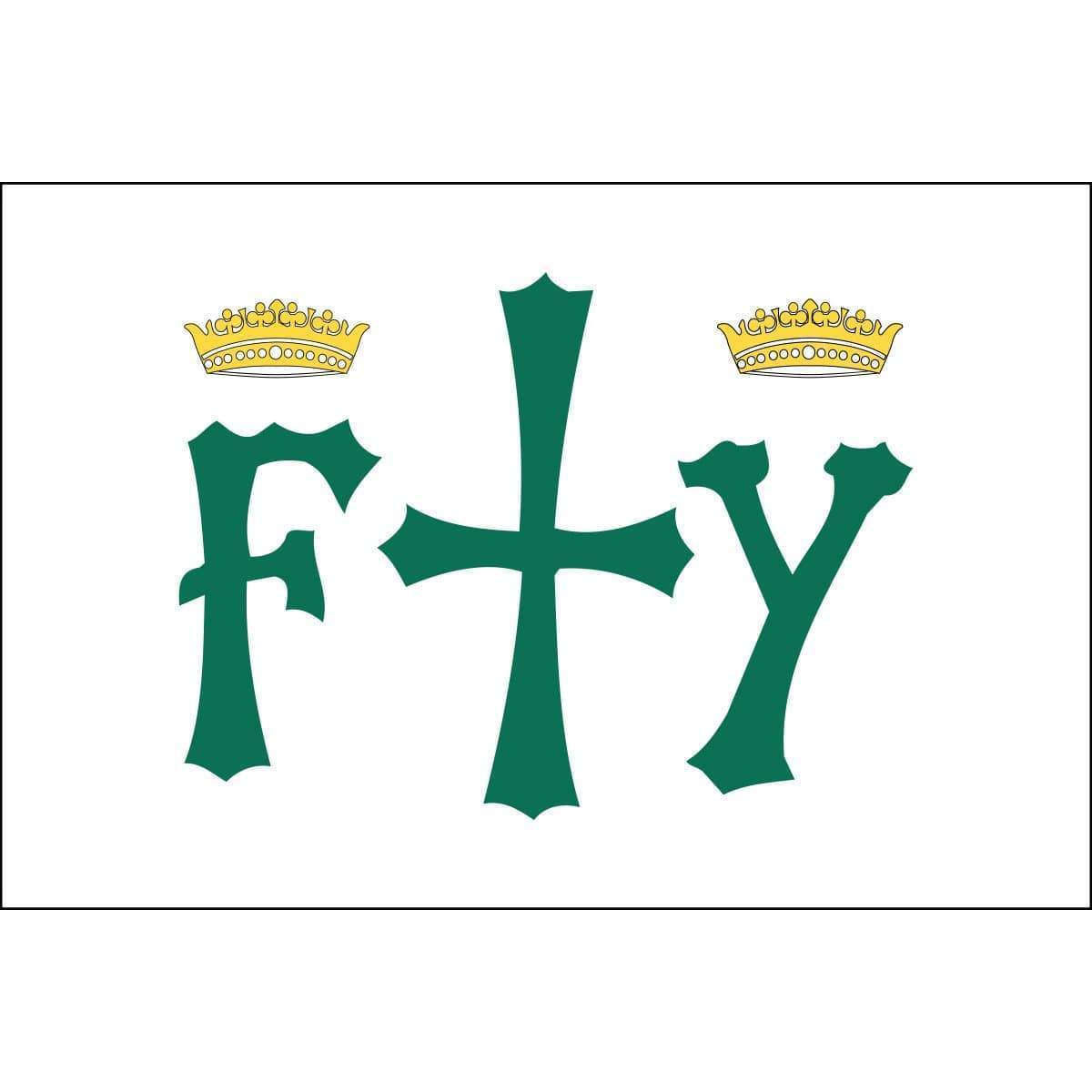 The Christopher Columbus flag is a historic flag. It was made by Christopher Columbus himself. His flag had a green cross in the middle of an ?F? and a ?Y?. The ?F? and ?Y? both have crowns above them.