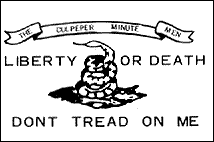 A stylized version of the original “Don’t Tread On Me Flag” supposedly used by the Culpeper Minutemen of Colonial America who had the slogan “Liberty or Death”. While not proven, this may be the infamous flag which was flown by the first Minute Men to engage British troops in what shortly thereafter became the Revolutionary War.