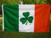 The Ireland Shamrock Flag is like the Ireland flag but has a three-leafed clover on it.
