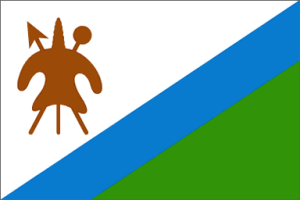 The Lesotho Flag was adopted on January 20th, 1987. The white shows peace, the blue shows rain, and the green represents prosperity. In the right corner is a Lesotho shield with weapons that symbolizes the will to defend Lesotho.