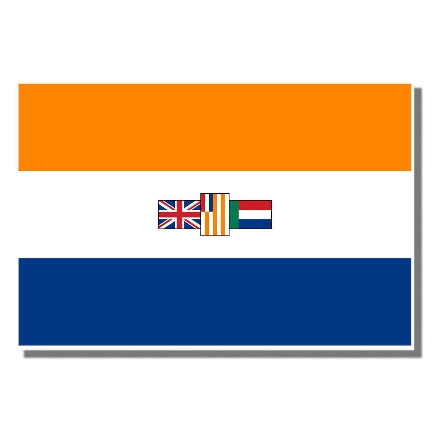 This is the South Africa (old) Flag. 1928-1994. It was also used in South-West Africa (now Namibia) when the territory was under South African rule. This flag is based on the Dutch Prince’s Flag in colors while 3 flags of nations that helped South Africa, United Kingdom, Orange Free State, South African Republic and are in the center. It was also known as Oranje, Blanje, Blou (Afrikaans for: “orange, white, blue”) or Apartheid Flag