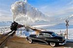 Union Pacific Railroad meets 1953 Buick in Winter Parking Sign